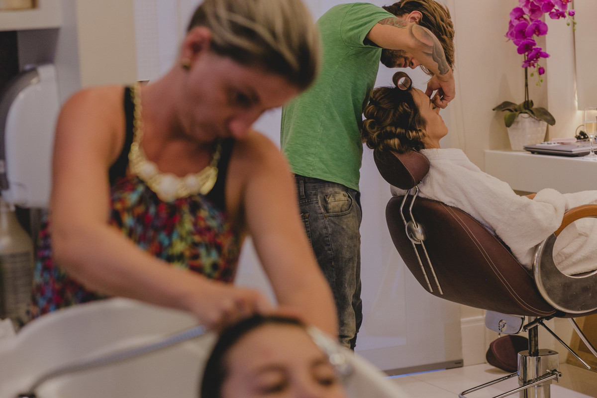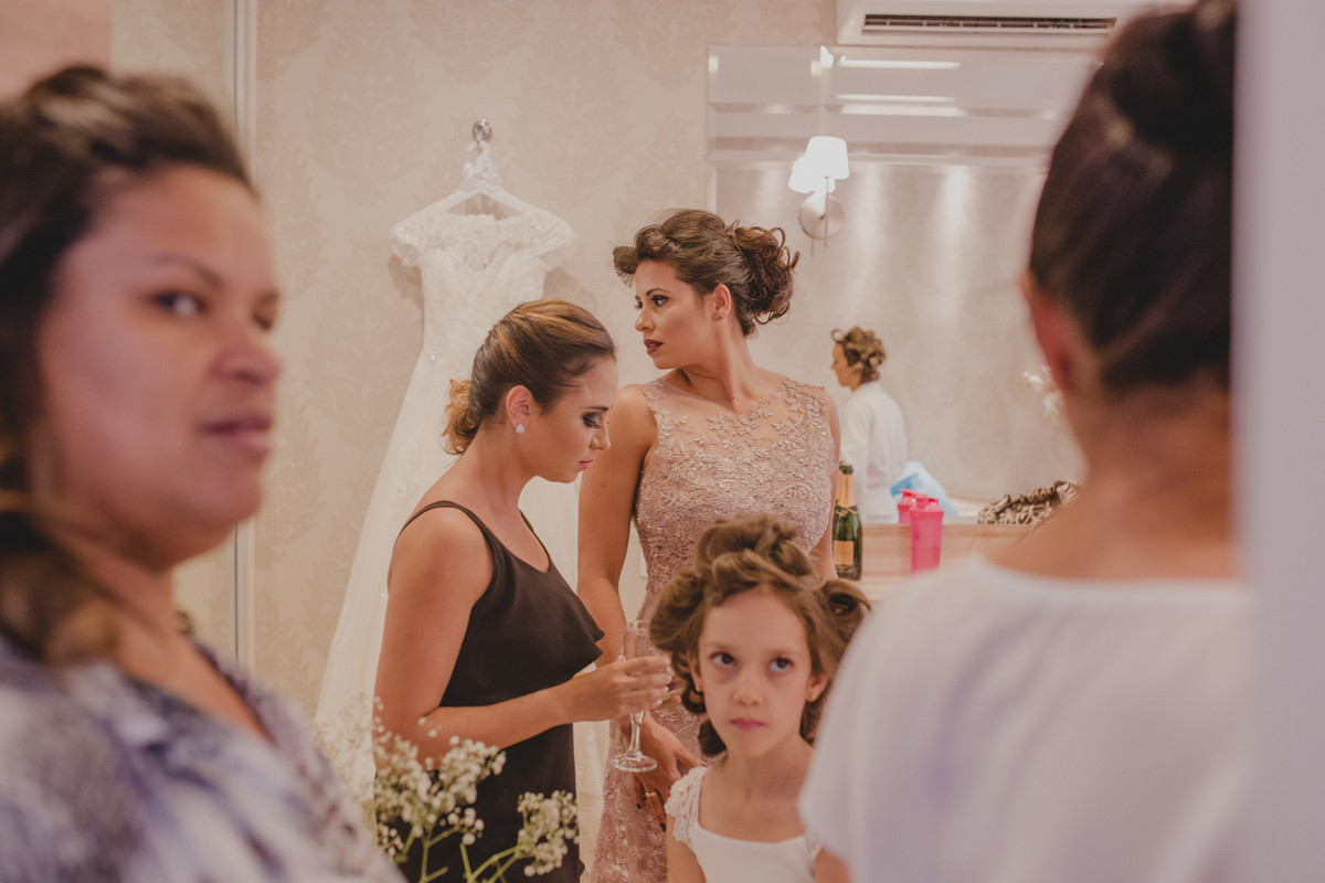 Começou no making of com a presença de algumas, madrinhas, dama de honra e familiares.