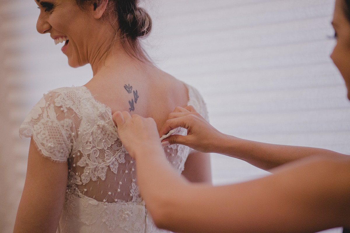 Enquanto ela se preparava para o momento do sim, era possível sentir a ansiedade em seu sorriso, mas mesmo assim a tranquilidade de sempre, permaneceu com ela.