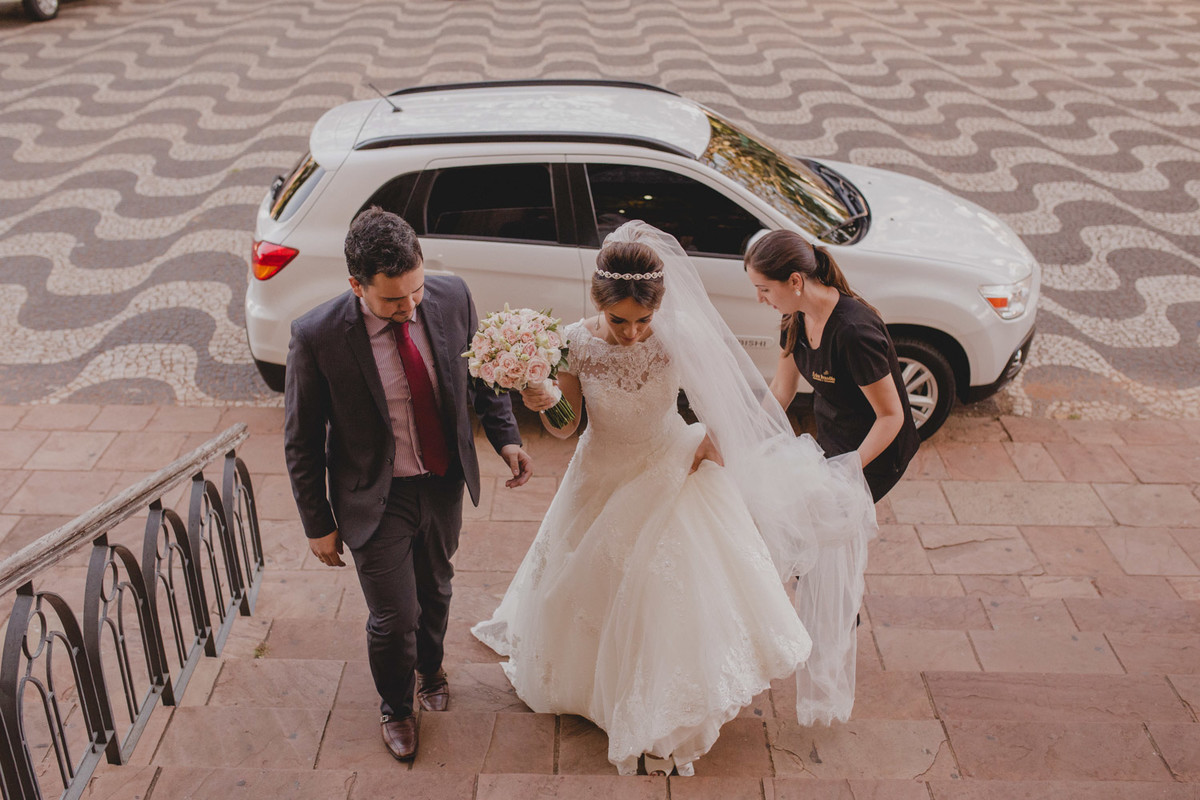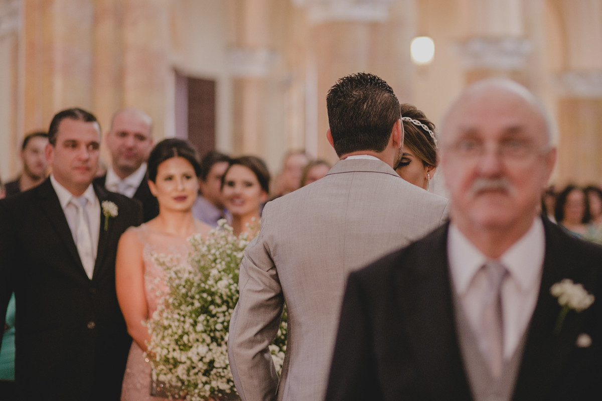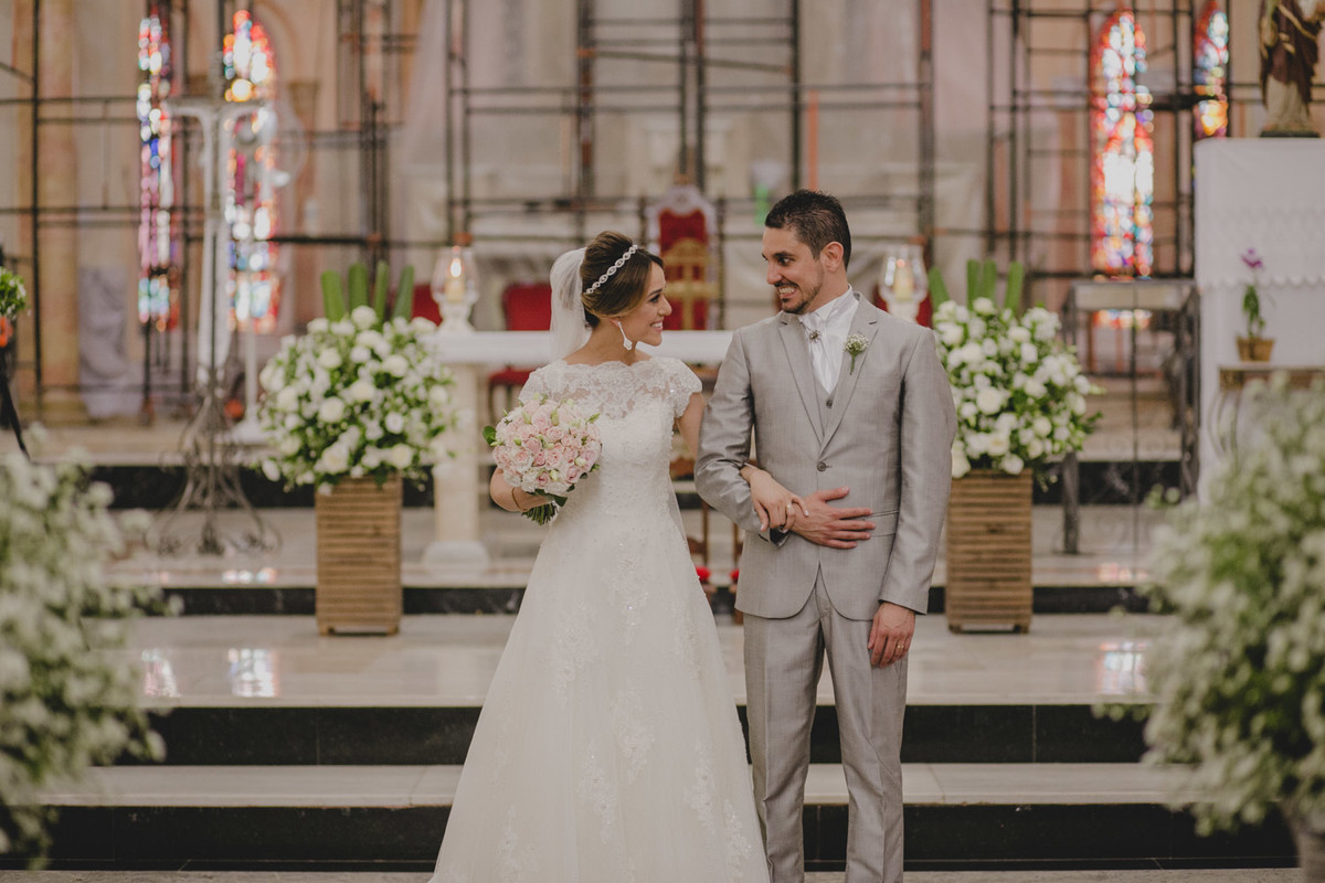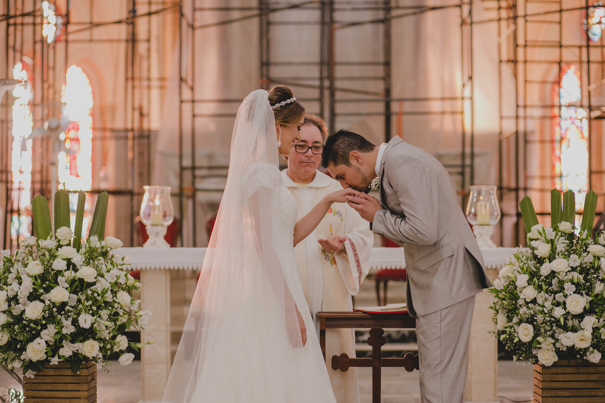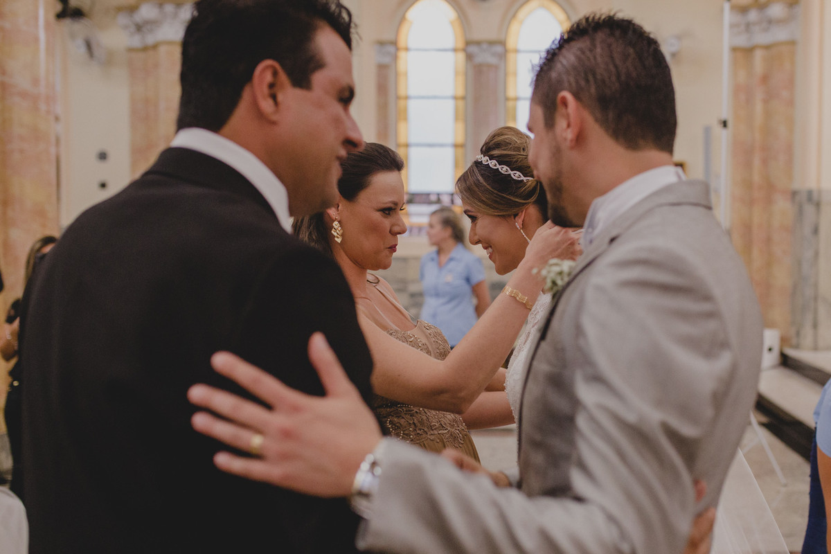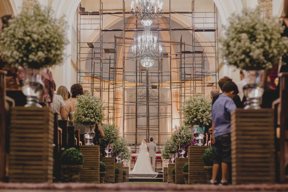 Na cerimônia um detalhe me chamou atenção, a igreja estava em reforma e o altar estava cheio de andaimes, aquilo de forma alguma atrapalhou e sim, proporcionou um cenário exclusivo para aquele momento, diferente de todos os casamentos que ja aconteceram naquela igreja.