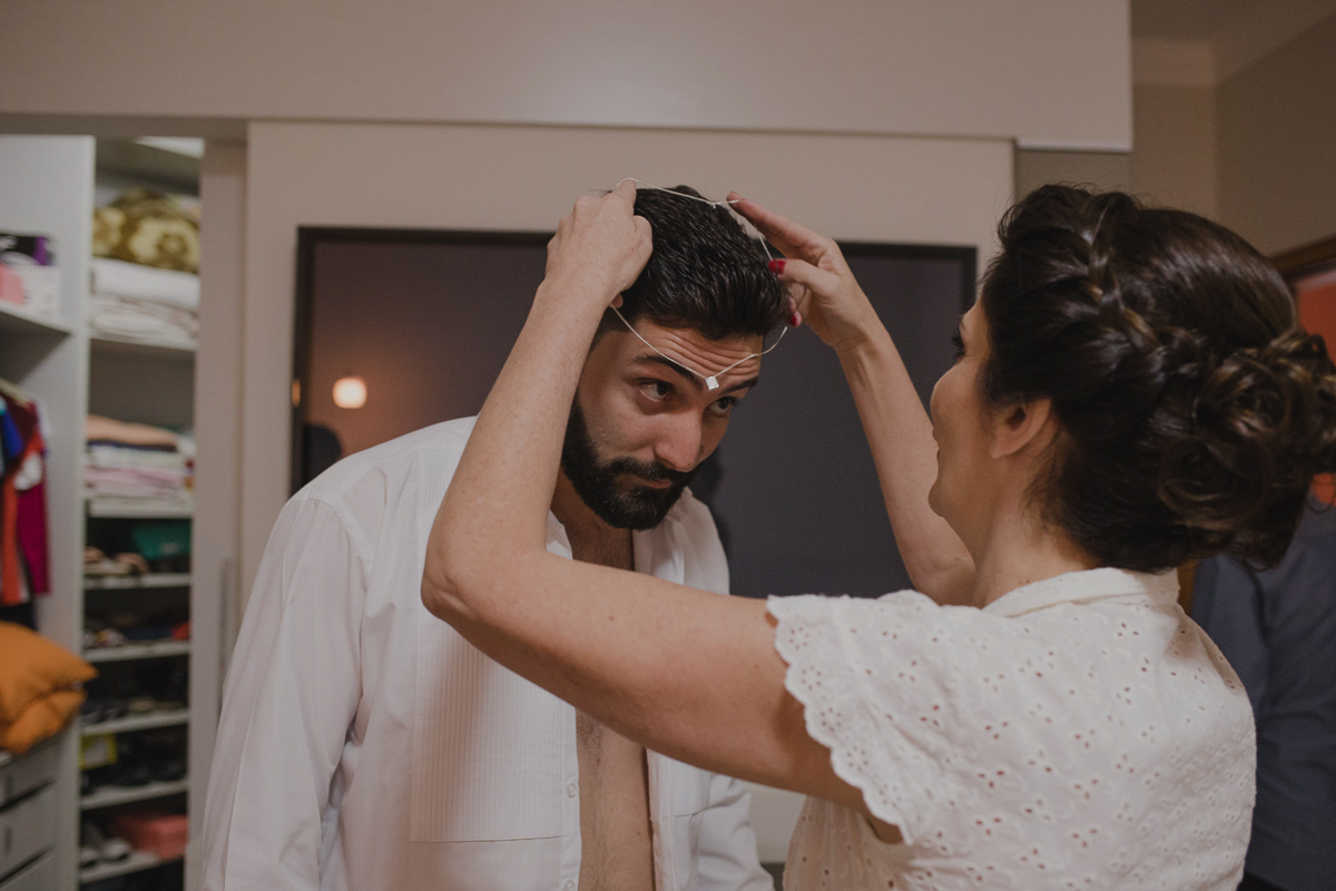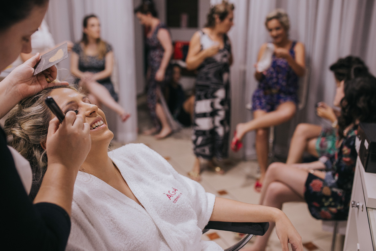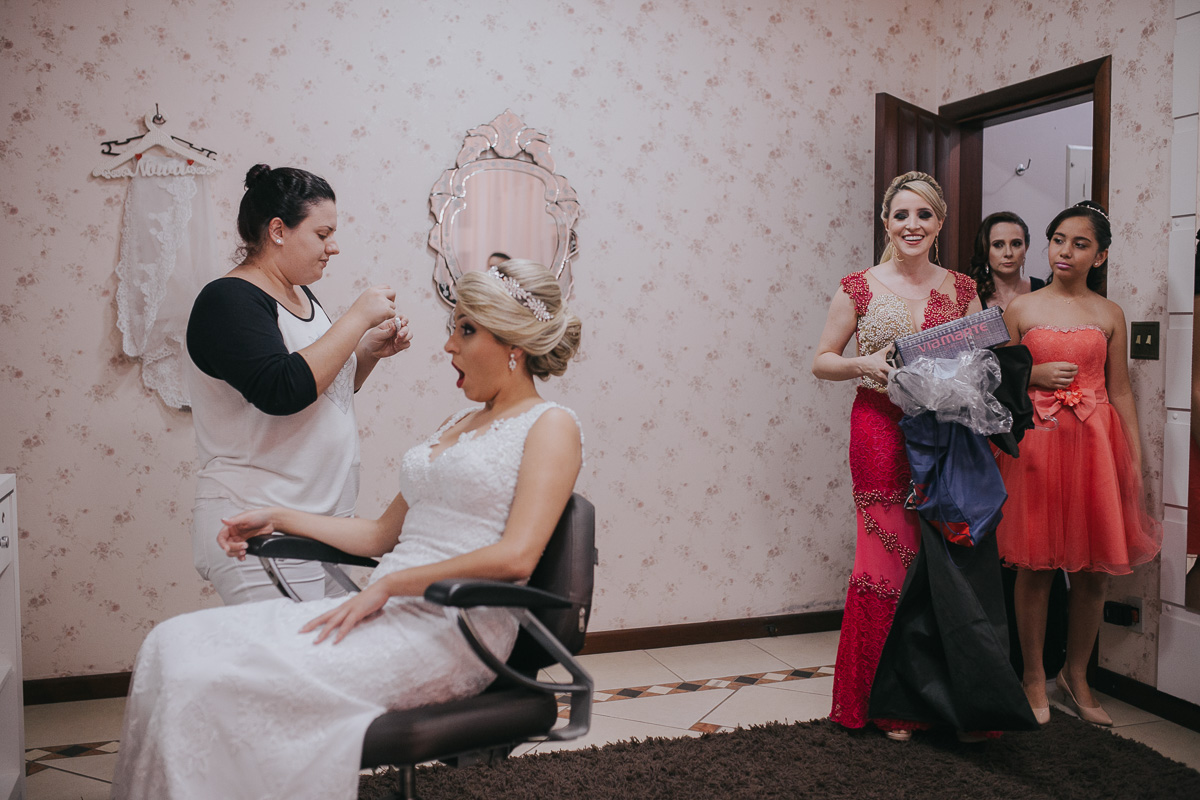 A Jaque com seu sorriso expressivo, se preparou para o casamento junto com suas madrinhas, quebrando um pouco a tensão e aproveitando para curtir os últimos momentos antes do SIM na companhia das melhores amigas, e o Felipe em sua casa com mamãe (coruja), papai e irmão,